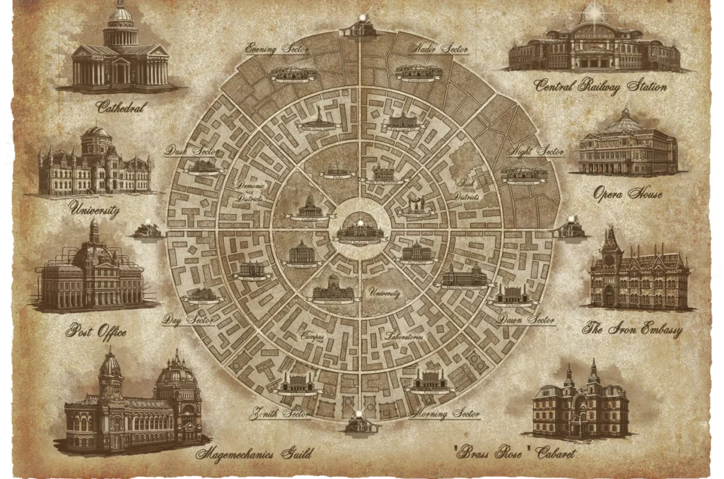 “O ano é 1894. Uma cidade matematicamente e tecnologicamente avançada estava destinada a se tornar a nova Utopia da era racional, mas uma catástrofe mudou tudo – a cidade caiu no Limbo, o limiar do Inferno. O progresso científico enfrentou a magia antiga. A cidade e seu povo ficaram presos em um reino místico que não vê a luz do sol.